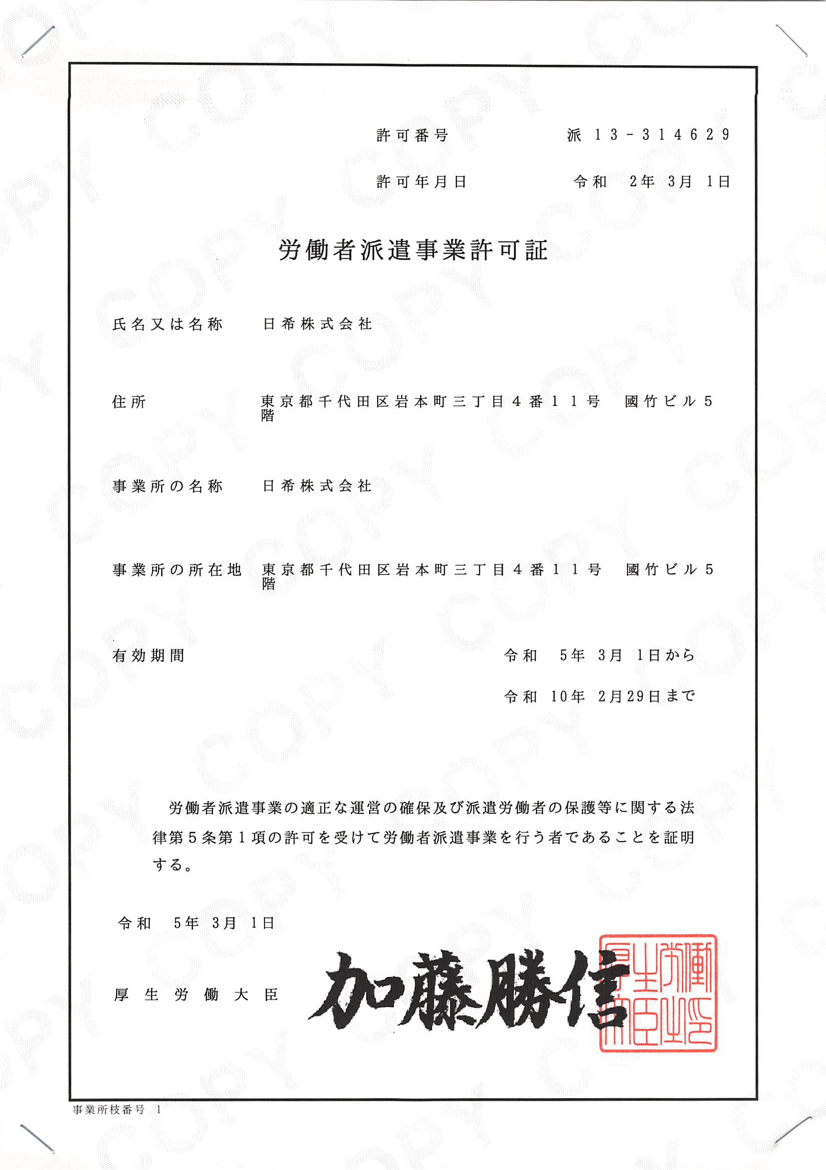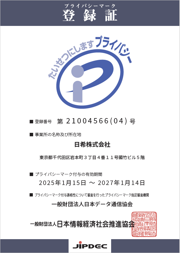 | 会社名 | 日希株式会社 NIKKI CO., LTD. | 所在地 | 〒101-0032 東京都千代田区岩本町3丁目4-11 秋葉原CRビル(旧:國竹ビル)5階 |