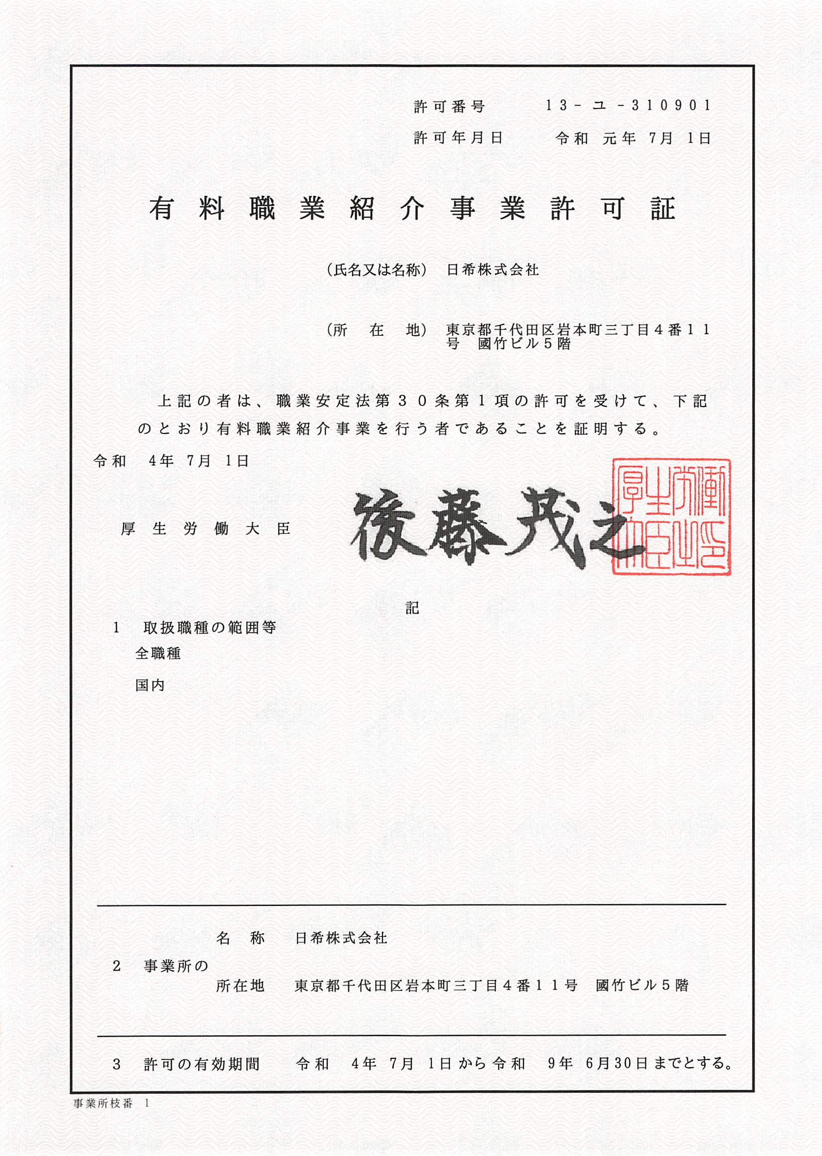 | 認定資格 | プライバシーマーク認定番号:第21004566(04)号 有料職業紹介事業許可番号:13-ユ-310901 一般派遣事業許可番号:派-13-314629 宅地建物取引業者免許証番号:東京都知事(1)第107386号 適格請求書登録番号:T2020001117764 |